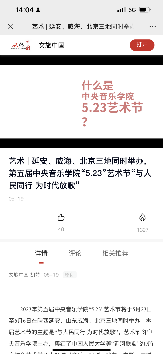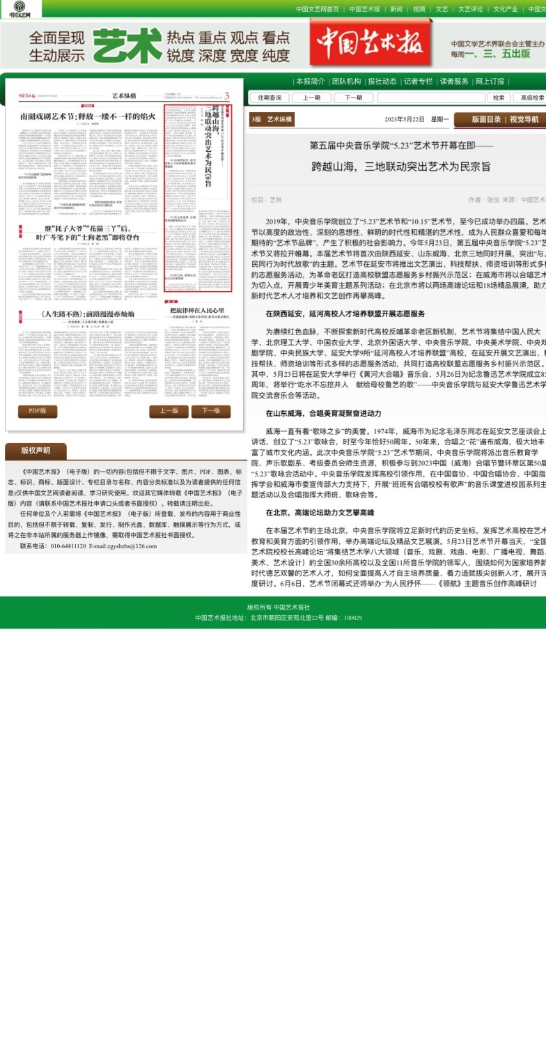 本届艺术节通过线下活动、线上直播,引起了极为热烈的社会反响,浏览量超过1亿人次。新华社、人民日报、人民论坛网、中央广播电视总台新闻中心、学习强国、光明日报、中国教育报、中国艺术报、中国文化报、人民音乐等多家媒体对活动进行了报道,特此与读者分享。