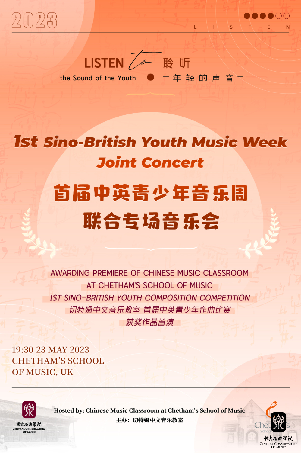 2023年5月21日至25日,由best365和英国切特姆音乐学校合作共建的独立音乐孔子课堂——“中文音乐教室”,在切特姆音乐学校隆重举办首届“中英青少年音乐周”,活动包括:艺术教育专题讲座、作曲专题讲座、大提琴大师班,参与切特姆学校午间音乐会,及举办“中英联合专场音乐会”等多项丰富内容。这也是自2021年9月,中文音乐教室举办揭牌仪式及庆典音乐会之后的首次线下学术交流品牌活动,标志着中文音乐教室建设进入新的历史阶段。