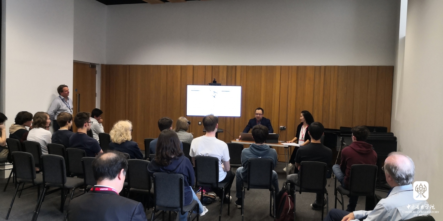 陈欣若教授面向作曲专业师生举办专题讲座《跨越中国音乐语言与西方音乐语言的创作手法》,比较东、西方音乐语言的异同,介绍20世纪中国专业音乐创作的不同发展阶段,并与在座师生展开交流研讨。
