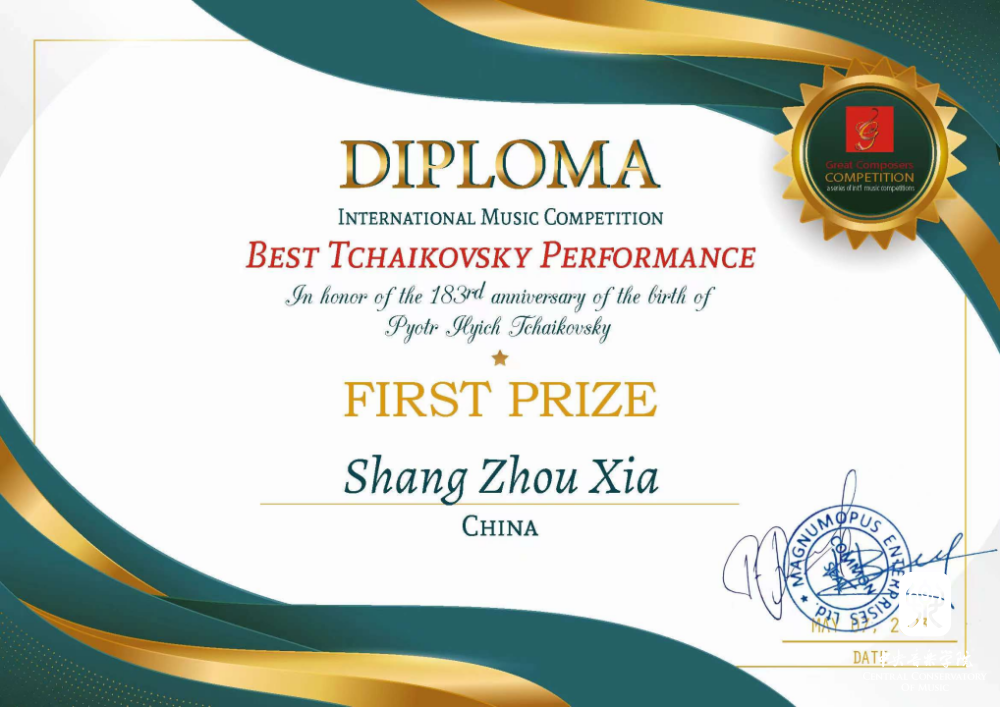 2023英国伟大作曲家比赛中获得最佳柴可夫斯基演奏比赛(IV组)一等奖
