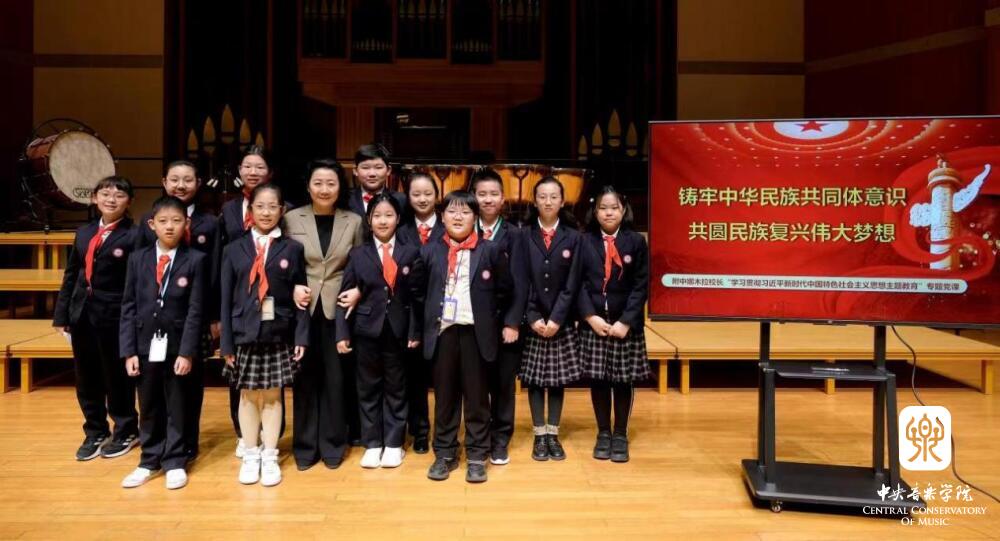 学校不断完善民族团结进步教育机制,针对各学段学生特点,设计铸牢中华民族共同体意识学习内容,教育引导学生了解中华民族形成发展的历史以及中华民族精神的核心内容,认识中国共产党领导各族人民共同团结奋斗、共同繁荣发展的成就,深刻理解我国是一个统一的多民族国家,要自觉维护国家统一和民族团结,增进“五个认同”。学校落实立德树人根本任务,牢记为党育人、为国育才使命,全员全程全方位育人,将民族团结教育通过言传身教,潜移默化地传递给学生,不断推动完善和积极创造各民族学生共居共学、共事共乐、共建共享的生活学习校园氛围。同时,用音乐架起桥梁,加强音乐作品创作和文化交流,多个青少年拔尖创新人才培养项目和交响乐团出访项目获得国家艺术基金支持,出访欧洲并获得广泛赞誉,在世界的舞台上展现了中国各族青少年昂扬的风貌和文化自信。