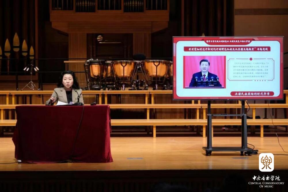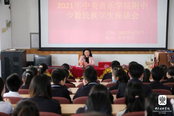 娜木拉校长作为此次领受颁奖的北京市代表、授牌活动领奖的亲历者,结合学校民族团结进步创建教育工作,以及五一期间由附中在澳门举办的第二届京港澳青少年音乐艺术嘉年华活动,以学习贯彻习近平新时代中国特色社会主义思想主题教育和铸牢中华民族共同体意识为主题,给全体学生做了一次生动的教育讲座。