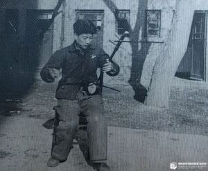 1962年李恒在天津音乐学院琴房门口练琴
