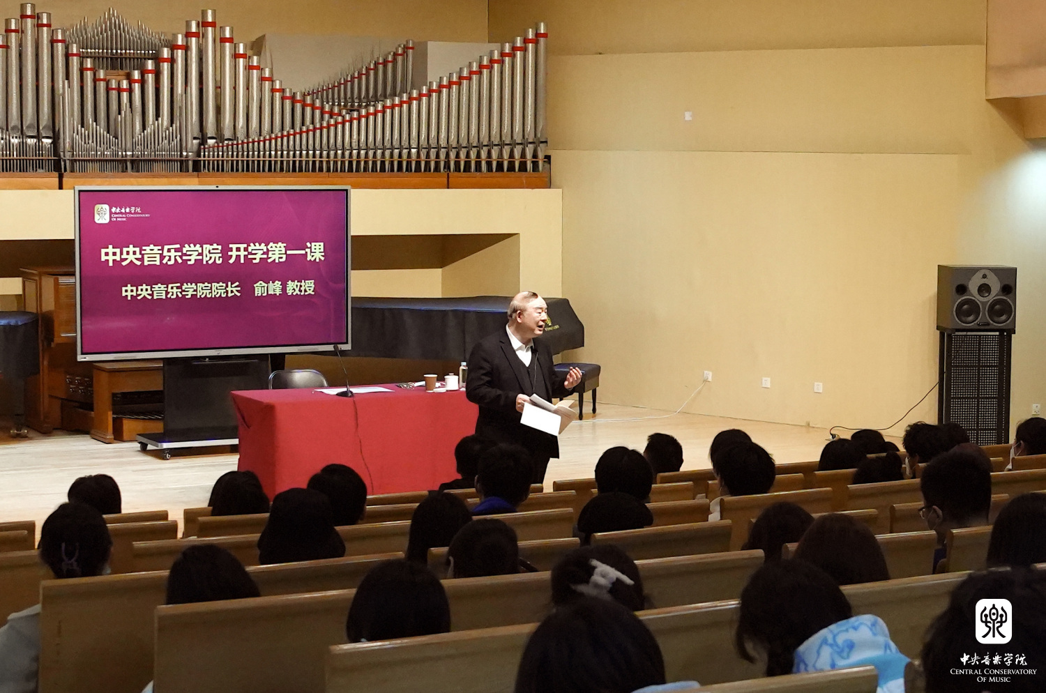 2023年3月21日下午,校长俞峰以“奋进新征程 建功新时代”为主题,在教学楼201为全校近200名学生讲授“开学第一课”,引导学生深入学习贯彻党的二十大精神,坚定“为人民服务”的文艺初心,勉励央音学子不负韶华、拼搏奋进。讲座由人文学部、思政部直属党支部书记何宽钊主持,党委学生工作部副部长刘兴辰、党委宣传部副部长许瑞、思政部全体教师、学工部相关教师、全体专兼职辅导员出席并认真聆听、学习。