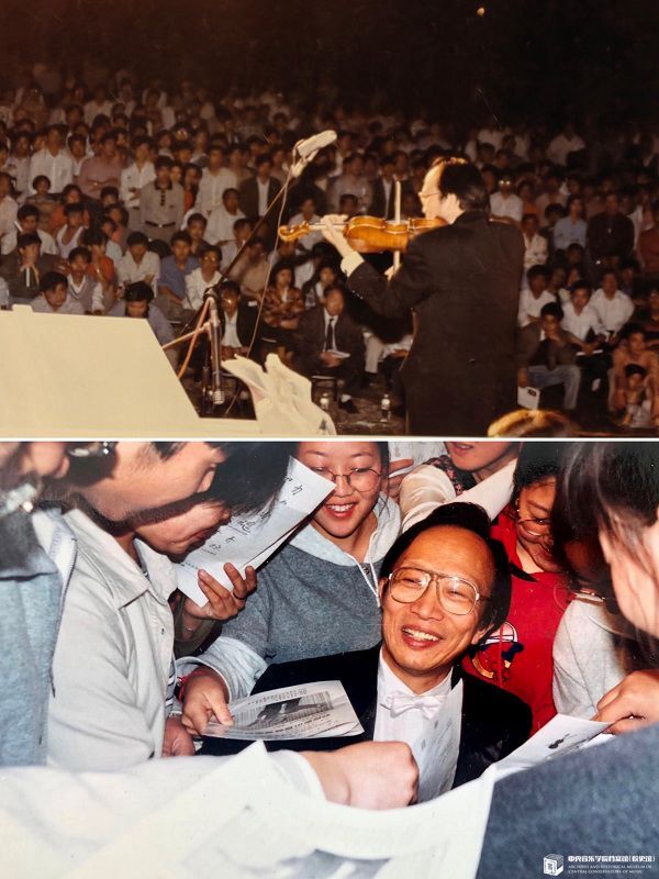 在教学之余,我还长年演出不辍。我的演出主要面向普通民众,多是公益性的。我一直牢记伯父天华先生的教导:“音乐是人民的精神食粮”。同时,我也曾多次受邀担任文化使者,把中国小提琴音乐艺术传播到世界各地。令人欣慰的是,作为一个“教学之余”的演奏者,三十多年来,我在国内外的音乐会从未受到冷遇。演奏是我的赤诚奉献,也是我教学的引擎。更重要的是,自己的身体力行及所获得的实践经验,也使学生们受益——让他们和我一样热爱和亲近舞台。