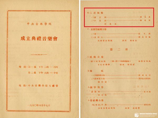 “央音”成立典礼音乐会节目单(局部),第一部第六个节目为刘北茂的二胡独奏