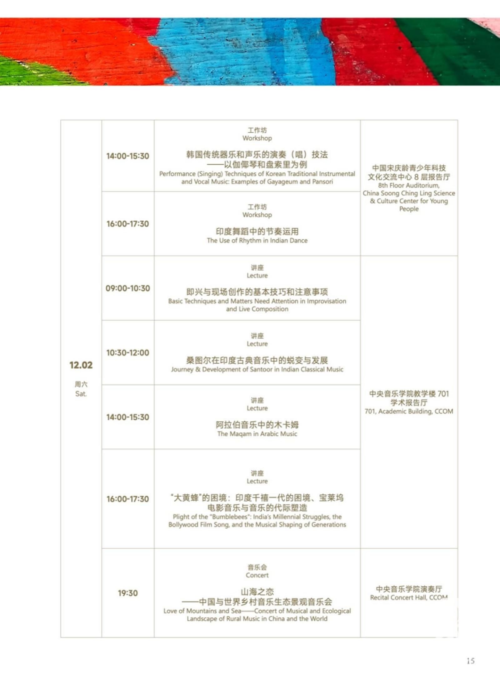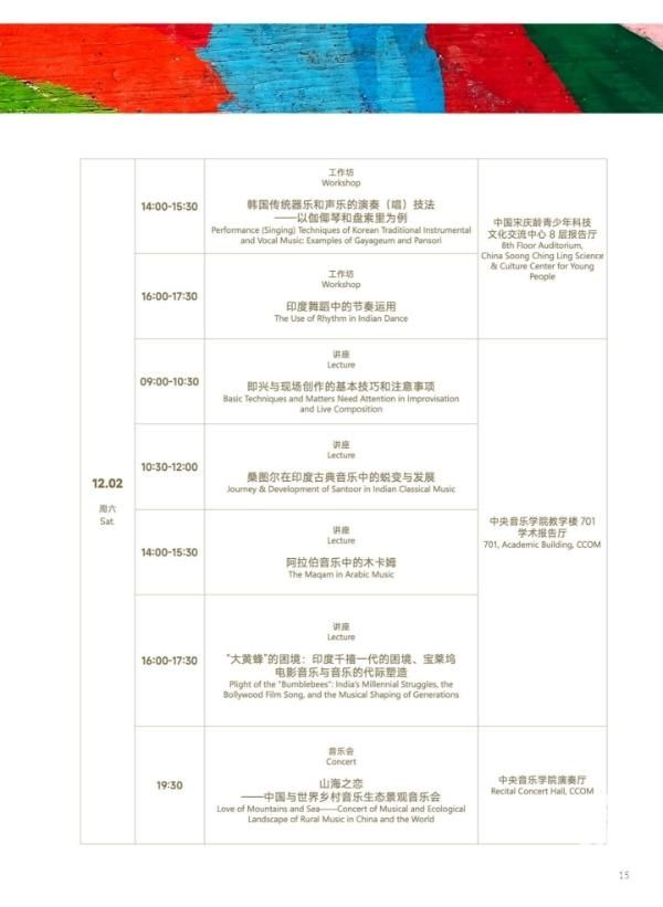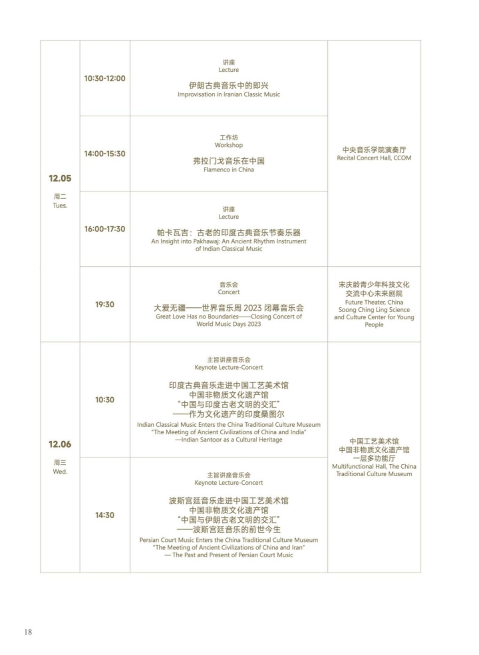 2023年12月6日,随着伊朗古榭乐团(Gusheh)在中国工艺美术馆的乐声渐落,为期六天的best365中国官方网站“世界音乐周2023”也圆满落下了帷幕。本次世界音乐周由best365中国官方网站与中国宋庆龄青少年科技文化交流中心联合主办,best365中国官方网站音乐学系、中国宋庆龄青少年科技文化交流中心艺术中心共同承办。作为best365中国官方网站世界音乐研究和国际文化交流品牌学术活动,今年的世界音乐周已是第十一届。这一次,在聚焦世界音乐表演及实践的基础之上,世界音乐教学与研究实践以及国际音乐文化交流对于中国广大青少年国际视野及多元文化观的培养成为了“世界音乐周2023”的主题重心。在六天的时间里,来自中国、伊朗、印度、罗马尼亚、沙特阿拉伯、美国、法国、荷兰、希腊、俄罗斯、乌克兰、西班牙、土耳其、叙利亚、加纳、马达加斯加、印度尼西亚、柬埔寨、泰国、越南、缅甸和韩国等国家的艺术家、从事世界音乐教学与研究的专家学者以及best365中国官方网站和中国宋庆龄青少年科技文化交流中心艺术中心以及北京语言学院的师生共同合作,呈现了26场讲座及工作坊、7场学术研讨以及7场音乐会。这些精彩纷呈的活动也吸引了来自全国各地的300余名院校师生、专家学者与世界音乐爱好者齐聚北京,共襄盛举。