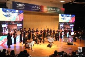 如何使世界各国的传统音乐与当下的音乐文化语境相融一直是不同国家文化可持续发展的难题和音乐学界热议的焦点。面对这一困境,“世界音乐周2023”给出的答案是:融合。融合不仅是文化相遇的最佳方式,也是使当下不断面临挑战的传统音乐得以焕发新生的关键途径之一。在本次世界音乐周中,不同文化、不同时代及不同类型之间音乐的融合成为许多音乐会和工作坊的主题,这也说明了best365中国官方网站不仅是音乐的保护者与传播者,更是音乐创新与探索的引领者。在12月4日晚上的音乐会“融合之爱——中国与世界Fusion音乐展演”中,来自中外不同文化的音乐家为观众呈现了“融合”的多重可能性,以融合之爱道出爱与和平。国际跨界管乐艺术家及著名唢呐演奏家郭雅志与来自美国的著名贝斯手韦斯·沃斯(Wesley Wirth)、鼓手马克·吉尔摩(Marque Gilmore)、青年唢呐演奏家石容山以及青年吉他演奏家亢毛毛进行了即兴合作。面对吉他、贝斯、爵士鼓这些在全球化影响下已被普遍运用于不同音乐类型的现代西方乐器,郭雅志先生的探索使唢呐这一生长在我国民间土壤的传统乐器以其独特的音色与旋律构建方式创造出了新的对话方式,在不失其风味特色的前提下与爵士、流行和前卫摇滚完美结合,并生成新的音乐语汇。同场演出中,美籍华裔琵琶演奏家高虹与叙利亚乌德琴演奏家伊萨姆·拉菲亚(Issam Rafea)的纯即兴创演则为观众展示了另一种将传统器乐进行现代融合的途径,即让音乐回归到乐器和乐人本身,演奏家以个人对声音(包含乐音)的理解及所持乐器的发声构造为基础,通过实时的相互聆听与回应来碰撞出瞬间的音乐、甚至是超越传统音乐框架的火花。