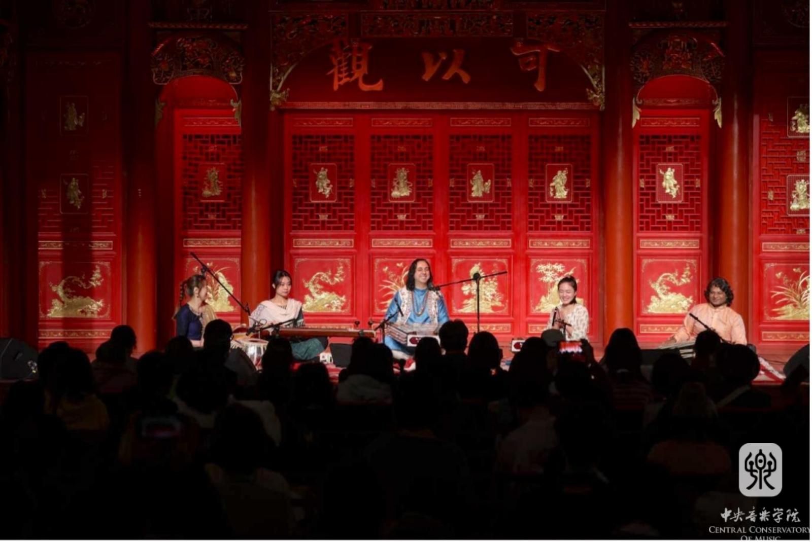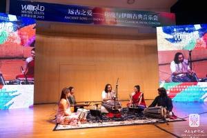 12月1日晚,本次世界音乐周的首场重磅音乐会“远古之爱——印度与伊朗古典音乐会”有幸邀请到了印度杰出的桑图尔演奏家、作曲家阿拜·儒斯特姆·娑婆里大师(Pt. Abhay Rustum Sopori)以及由伊朗作曲家和桑图尔演奏家斯亚马克·阿伽伊(Siamak Aghaei)带领的古榭乐团。他们精湛绝伦的表演分别以印度桑图尔和伊朗桑图尔作为音乐演奏的核心,通过传统的古典音乐将这两种具有近亲之缘却又风格各异的乐器并置,让深远的印度与古老的波斯文化在乐声中交汇,令观众叹为观止、感动不已。作为呼应和延伸,best365中国官方网站与中国宋庆龄青少年科技文化交流中心联合中国工艺美术馆中国非物质文化遗产馆又共同举办了“世界音乐周2023——印度、波斯宫廷音乐走进中国工美馆中国非遗馆”的活动。在中国传统戏台上,印度与伊朗的音乐家再次以讲、演结合的形式再现了印度桑图尔乐器的演变和波斯宫廷音乐创演的悠久传统。这是中国工艺美术馆古老戏台建成以来第一次回响和萦绕着来自印度和伊朗的远古之音,连结起一带一路上的三大文明,诉说着历史长河音乐中亘古不变的爱,让观众恋恋不舍。特别值得一提的亮点是中国世界民族音乐的师生也能够用印度与伊朗乐器与演奏家们同台献艺,体现了中国对世界音乐开放且深入的研究。