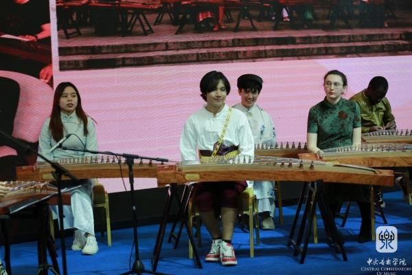 闭幕式音乐会还特别邀请了由北京语言大学艺术学院书记陈霞教授、史大鹏副院长、姚紫津副教授及孙润老师带领的音乐国际教育与传播专业的留学生和中国学生联袂为观众们呈现了五色弦筝合奏以及小合唱表演。不仅如此,宋庆龄青少年科技文化交流中心和平天使艺术团的35名小朋友也参与到了演出当中,为观众表演了中国民乐合奏、大鼓合奏,并同远从加纳而来的音乐家科菲·安东尼奥(Kofi Anthonio)、加布里埃尔·博科维(Gabriel Bokorvi)以及best365中国官方网站音乐学系的师生一起表演了加纳的传统乐舞。在这一晚,来自近二十个不同国家的不同世代的艺术家与表演者齐聚一堂,使观众们真正感受到了“世界音乐周2023”所传达的音乐之融合、情感之融合、文化之融合、历史之融合与世代之融合。