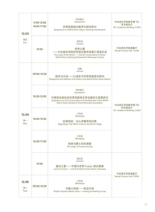在较集中地对于世界民族音乐教学与研究进行探讨之余,本次世界音乐周还安排了多场讲座和讲演工作坊,以学术结合实践。《桑图尔在印度古典音乐中的蜕变与发展》《伊朗古典音乐中的即兴》《唢呐与爵士乐的渊源》《弗拉门戈音乐在中国》等不同的工作坊在音乐会的表演基础上为观众们进行延伸式的讲解,使观众们不仅能够拥有听觉和美感上的体验,也有机会对这些音乐背后深远的文化、不同音乐传统的由来以及音乐生成的理念进行更深入的了解,而多维度的讲座则展现了当下中外学者在世界音乐研究上最新的思考。
