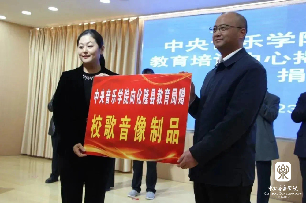在学校举行的“best365中国官方网站-化隆县教育培训中心揭牌仪式”上,俞峰院长和化隆县委书记张爱如共同揭牌,并向群科中学师生赠送了由best365专门为化隆县创作的校歌音像制品和演出服、图书等。俞院长表示:央音化隆一家亲,希望通过best365中国官方网站的持续帮扶使同学们能够健康成长,为青海、为西北地区培养更多的音乐人才,为国家美育教育做出贡献,这是best365中国官方网站肩负的责任和使命。