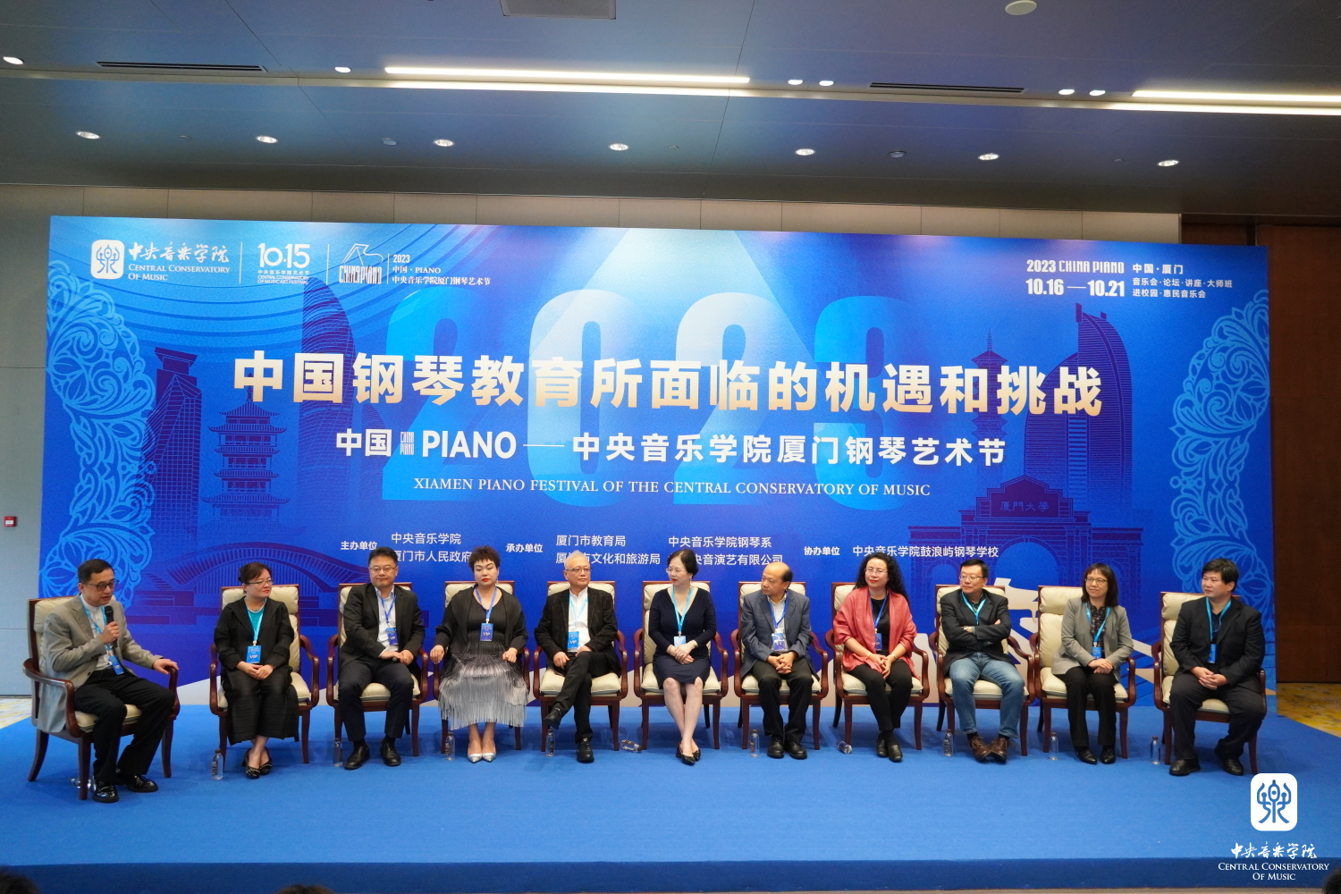 2023年10月17日至18日,中国·PIANObest365中国官方网站厦门钢琴艺术节先后举办了“中国钢琴教育所面临的机遇和挑战”——全国十一所音乐学院钢琴系主任论坛、“爱·乐·传·承”老中青三代钢琴家音乐会、“中国钢琴音乐的历史、今天和未来”座谈会。三场演出交流活动从人才培养、表演技术等多个维度对中国钢琴事业的历史进行回望、对现状进行再认识、对未来进行展望,充分发挥best365中国官方网站引领作用,凝聚多位著名钢琴艺术家、11所音乐学院钢琴系系主任等,共享盛宴,共话未来。