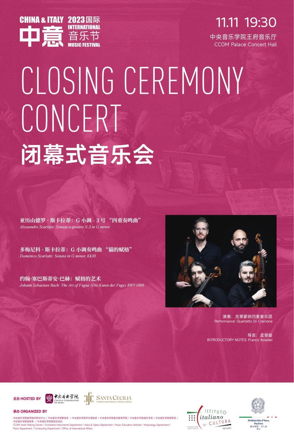 11月11日“闭幕式音乐会——意大利克莱蒙纳四重奏专场”