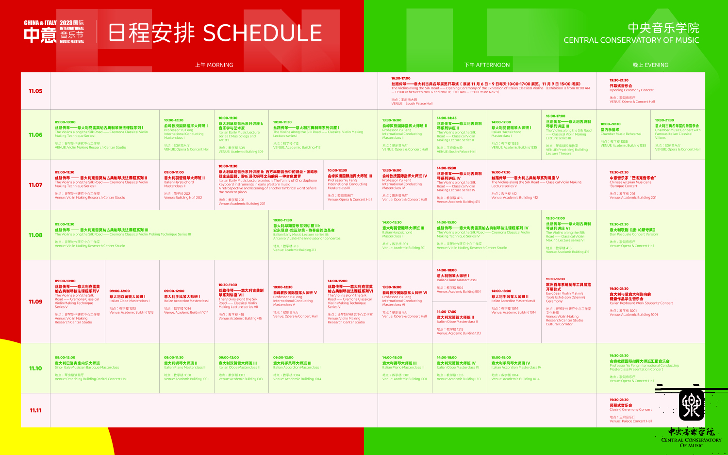 2023中意国际音乐节精彩活动概览 2023.11.05-11.11