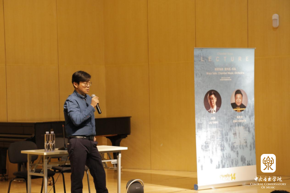 两场探讨独奏乐器在室内乐演奏中的方向与思考的讲座由笙演奏家王磊教授与长号演奏家刘洋教授、小号演奏家肖凯文老师主讲。他们立足于各自专业,结合自身舞台经验与教学实践经验开展精彩的讲解,并向学生们传授了最踏实的演奏之道:过硬的独奏能力是一切的基础,而室内乐是听力与合作能力的特训。