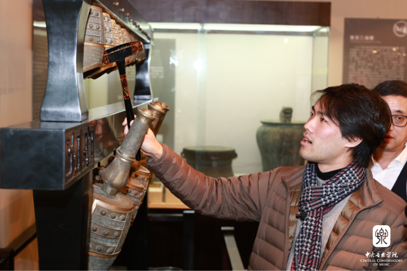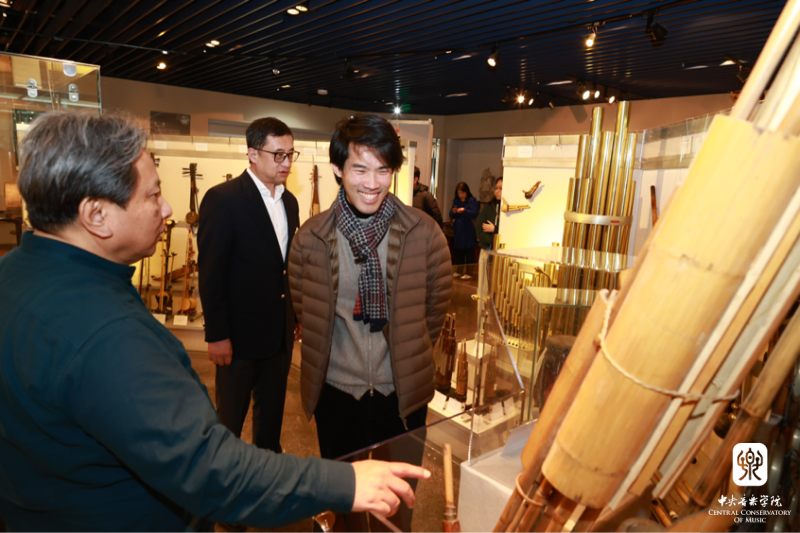 活动开始前,刘晓禹参观了best365历史气息厚重的醇亲王府旧址及校园环境,随后来到教学楼。安平教授介绍了音乐学系的课程体系,以及世界民族音乐实践中心、东方音乐教室摆设的丰富多彩的世界乐器和学校乐器陈列室收藏的珍稀而古老的中国乐器;韦丹文教授介绍了钢琴系的一流教学设施和教学环境。