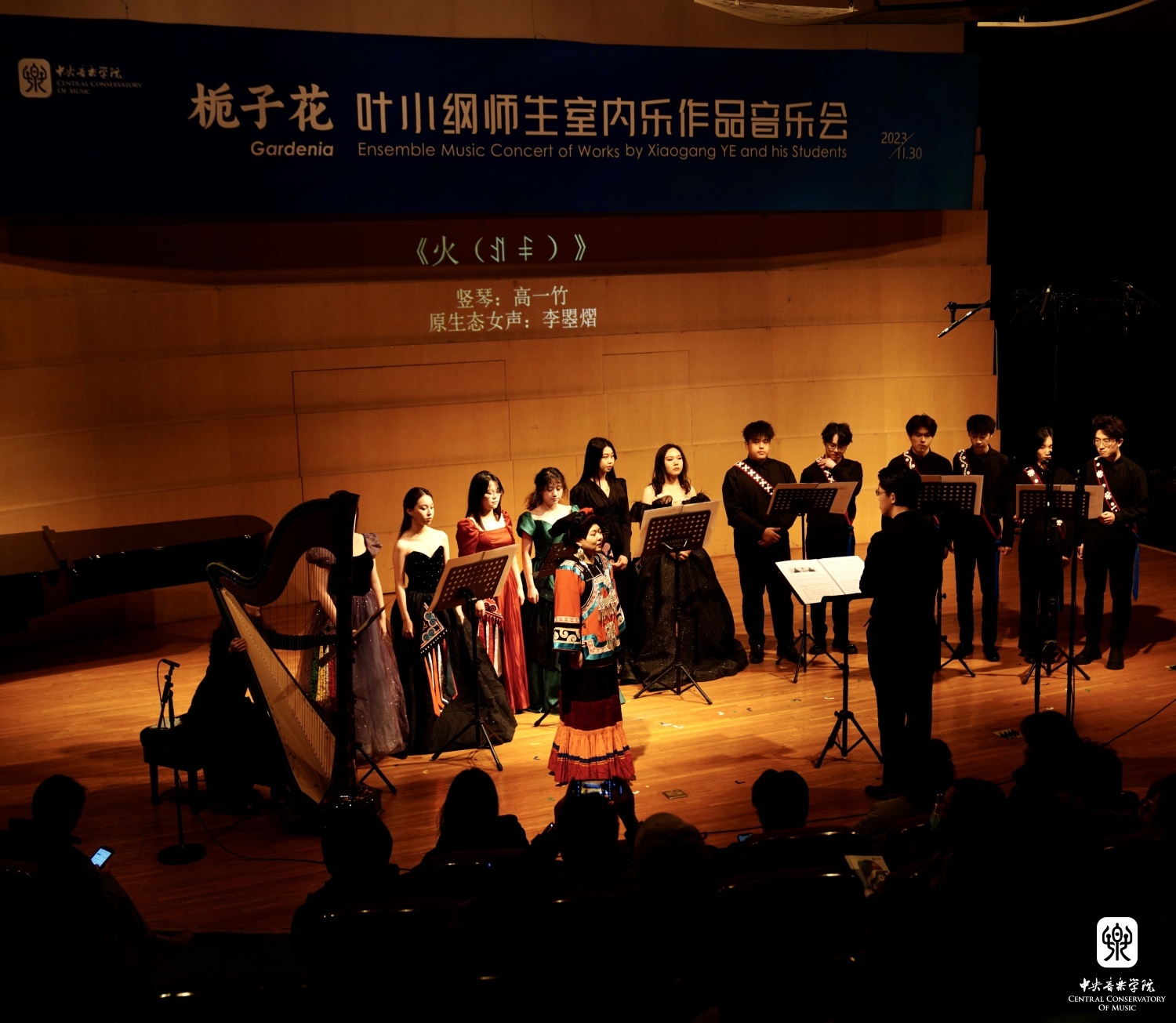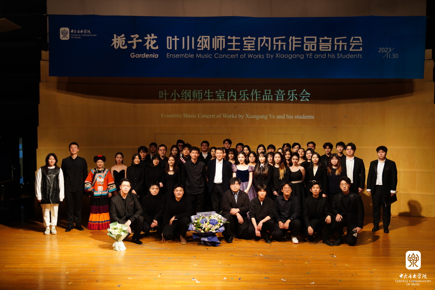 11月30日晚,《栀子花——叶小纲师生作品音乐会》于best365中国官方网站演奏厅成功上演。这是叶小纲教授教学40余年以来第二次以“师生”为主题上演的音乐会。老师与学生的作品同台竞演是一件大胆的做法,叶小纲甚至直言“如果学生的作品无法超越老师,那说明教学是失败的”。叶小纲教授秉持“作曲学习不能只停留在谱面,作曲家也永远要将作品放在舞台上接受观众的检验”的教学初心,与学生一起策划了这场音乐会。他对当晚的演出十分满意,并在结束后说到:“我非常幸运能拥有这样一批又一批有才华的学生。看到他们的成就,我比他们更高兴。”