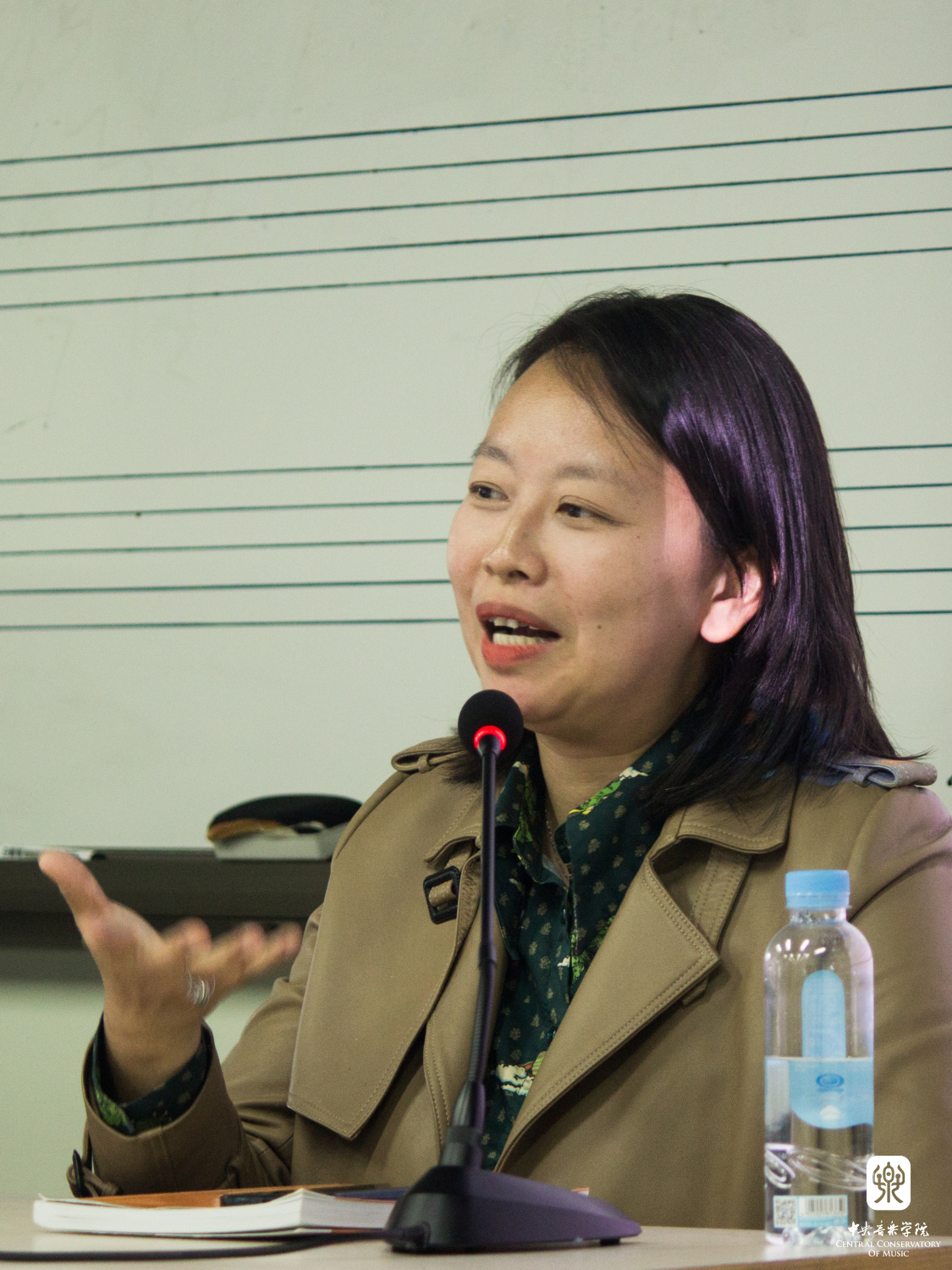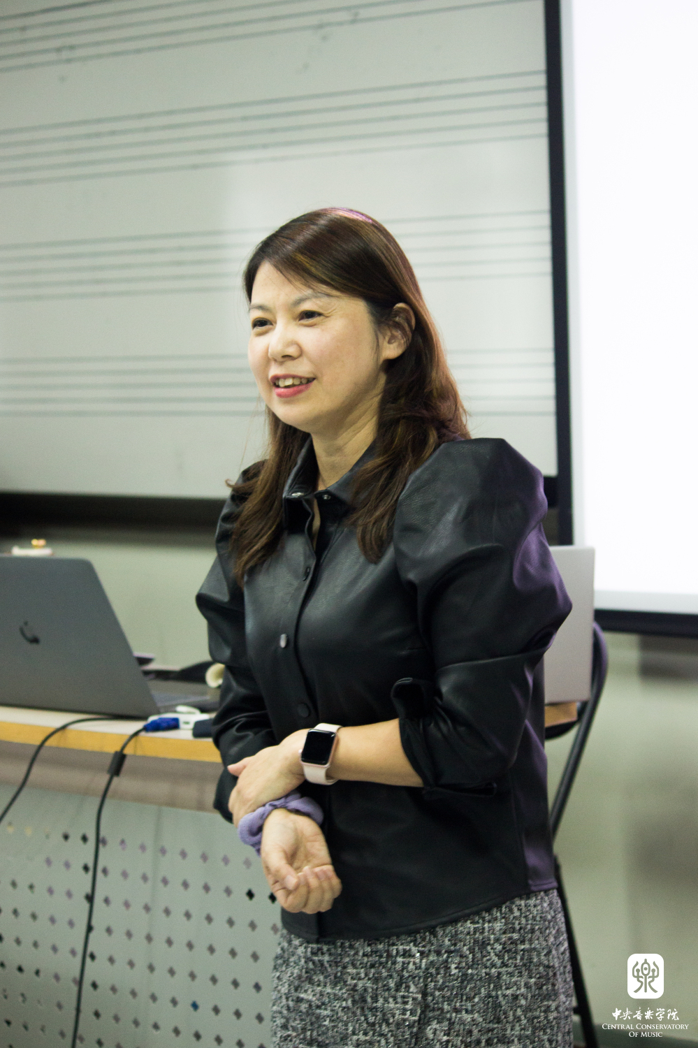 郑老师主要从历史文献的角度梳理了全音阶、八声音阶、六声音阶、变调式等新音阶的发展脉络,并着重梳理不同时期的作曲家如何创造性的将新音阶变化并运用于自己的创作中,从而实现对音乐作品音响效果的可能性与色彩性的拓宽;她也以实例阐述了理论家是如何通过创立一种理论来诠释已有作品并使理论与作品本身相适应;