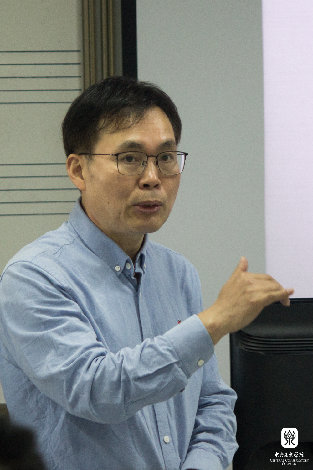 10月12日下午,系列讲座在教学楼617教室开讲。作曲系主任郝维亚教授主持了讲座,他代表我院及作曲系欢迎贾达群教授及其团队来到我院分享最新学术成果。贾达群教授带来首场题为“中心到核心的衍变,自由与逻辑的博弈——后调性音乐音高组织发展之我见”的讲座。贾达群追溯了音乐史中两次重要的革命性突破及其所带来的音高组织演变,并由此引出“后调性音高组织理论”系统性研究的必要性及其意义。随后他详细阐述了两次音高革命所带来的音乐审美与结构逻辑的转变,强调了后调性音乐抽象性与逻辑性的提高及其时间维度和空间维度上的拓展。作为研究团队的带头人,贾达群分享了《后调性音乐中的音高组织体系、技法及分析》从研究、撰写到整理、出版的过程,并逐一介绍各成员的研究子课题,他代表团队感谢我院的邀请,期待通过此次系列讲座活动增强校际间学术交流和彼此促进。