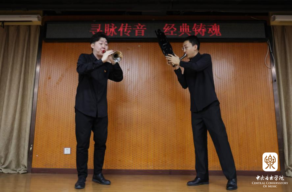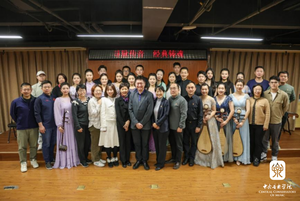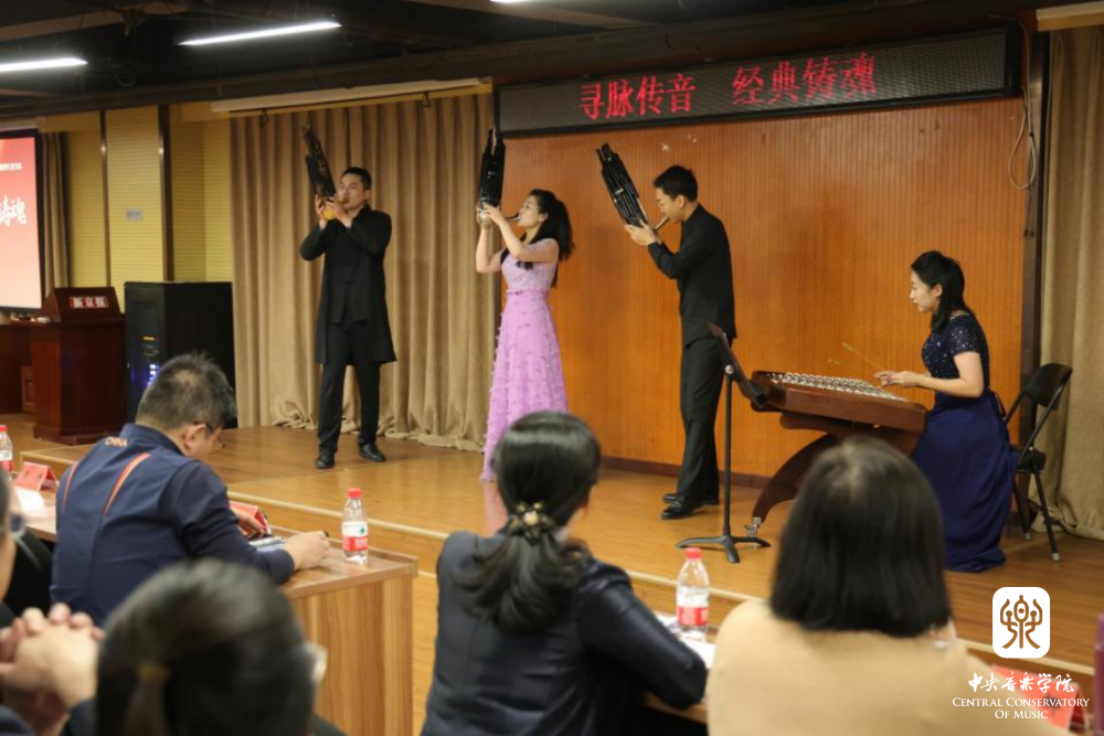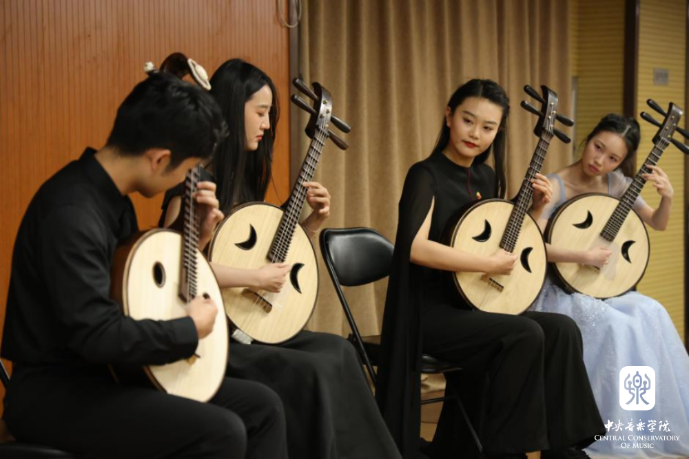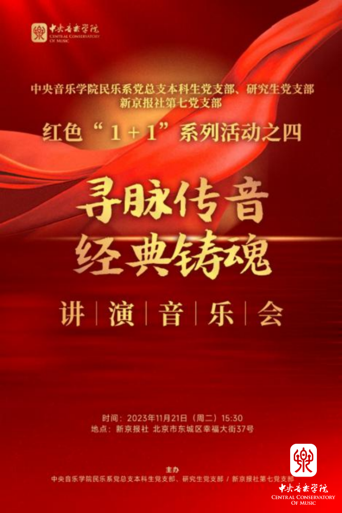 在参观完新京报社后,民乐系学生党员以“寻脉传音 经典铸魂”为主题,举办讲演音乐会。新京报社党委书记、社长刘军胜,新京报社党委副书记李丽辉,新京报社副社长郭强,新京报社副总编辑孙浩等到场。在每首作品演奏之前,主持人王磊教授为大家介绍了中国的传统乐器,以及每部作品的表达内容。音乐会所选曲目中,有大家耳熟能详的红色经典,也有各专业最具代表性的作品,包括唢呐独奏《胜利秧歌》、古筝齐奏《山丹丹开花红艳艳》、阮齐奏《丝路驼铃》、笙齐奏《冬猎》、琵琶齐奏《唱支山歌给党听》、二胡齐奏《光明行》,最后集体合奏《我的祖国》。音乐会用中国民族音乐传承者的风采,彰显新时代青年人的昂扬自信,用中国的民族乐器,传递贯通古今的家国情怀;用丰富多彩的编制组合,诠释一脉传承的红色基因。