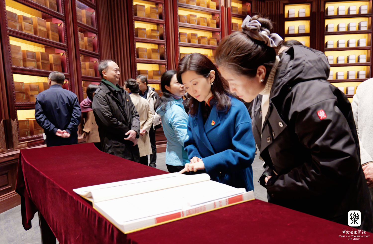 于红梅书记强调,建设中国国家版本馆,是以习近平同志为核心的党中央作出的重大决策。今年6月份,习近平总书记在百忙之中,专程考察了中国国家版本馆中央总馆,并召开了文化传承发展座谈会,充分说明了习近平总书记对文化工作的高度重视,对总馆建设的亲切关怀。今天,我们在这里重走习近平总书记的足迹,采取“沉浸式”教学的方式,来到中国国家版本馆中央总馆开展现场学习,形式非常好,地点也很有意义。音乐是有声的文字,二者都是文化的载体,相辅相成、心意相通。希望大家在接下来的参观过程中,认真听、仔细看、用心悟,做到观有所感、学有所获,把习近平总书记对文化工作的各项要求落实到具体工作中,作为一名新时代文艺工作者,切实担负起新的文化使命。