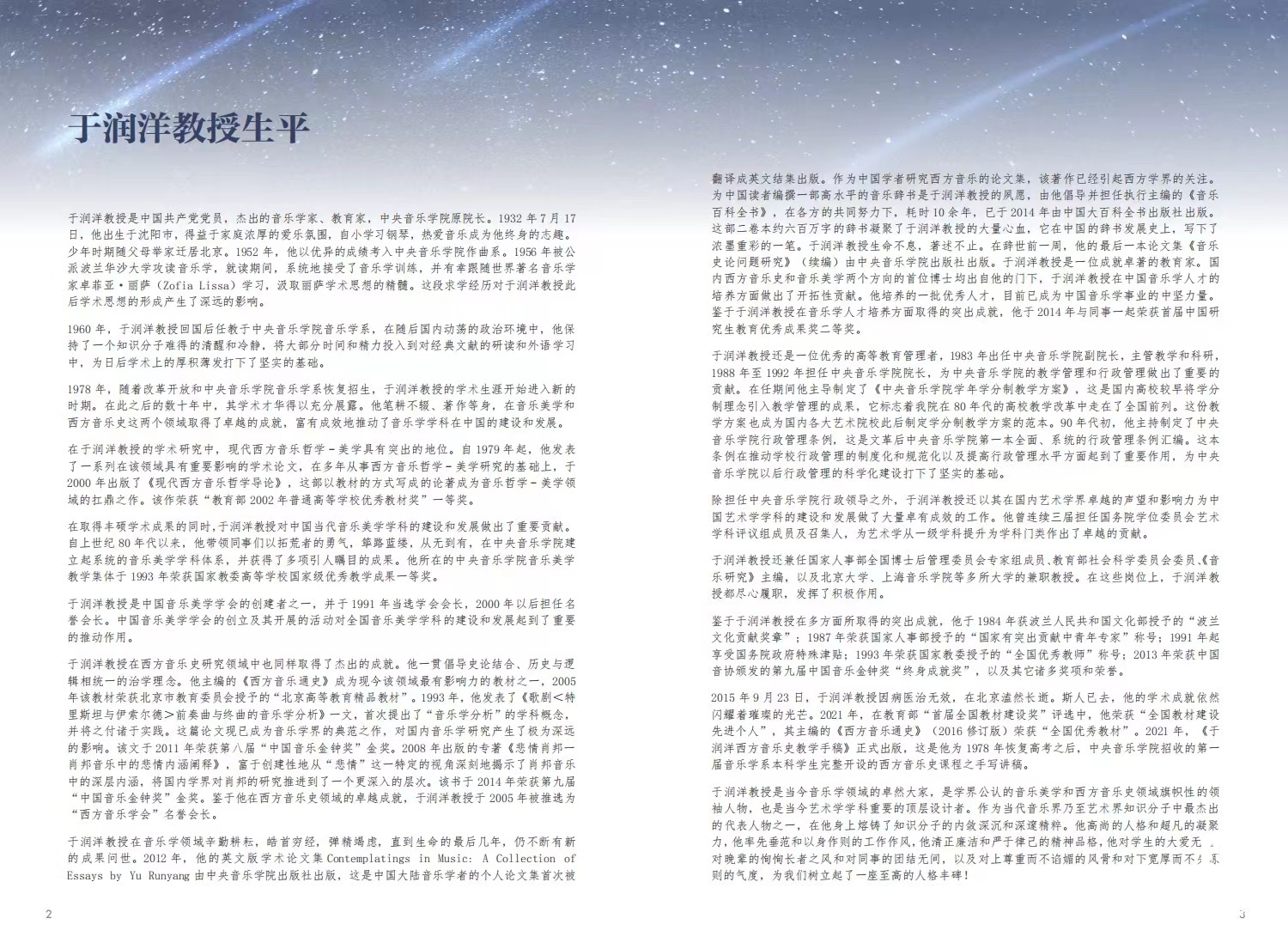 于润洋先生(1932-2015)是中国杰出的音乐学家、教育家、best365中国官方网站原院长,是中国音乐学界公认的音乐美学和西方音乐史领域旗帜性的领军人物,也是中国艺术学学科重要的顶层设计者。对我国艺术学学科、音乐学学科的构建、研究、教育均有卓越的贡献!
