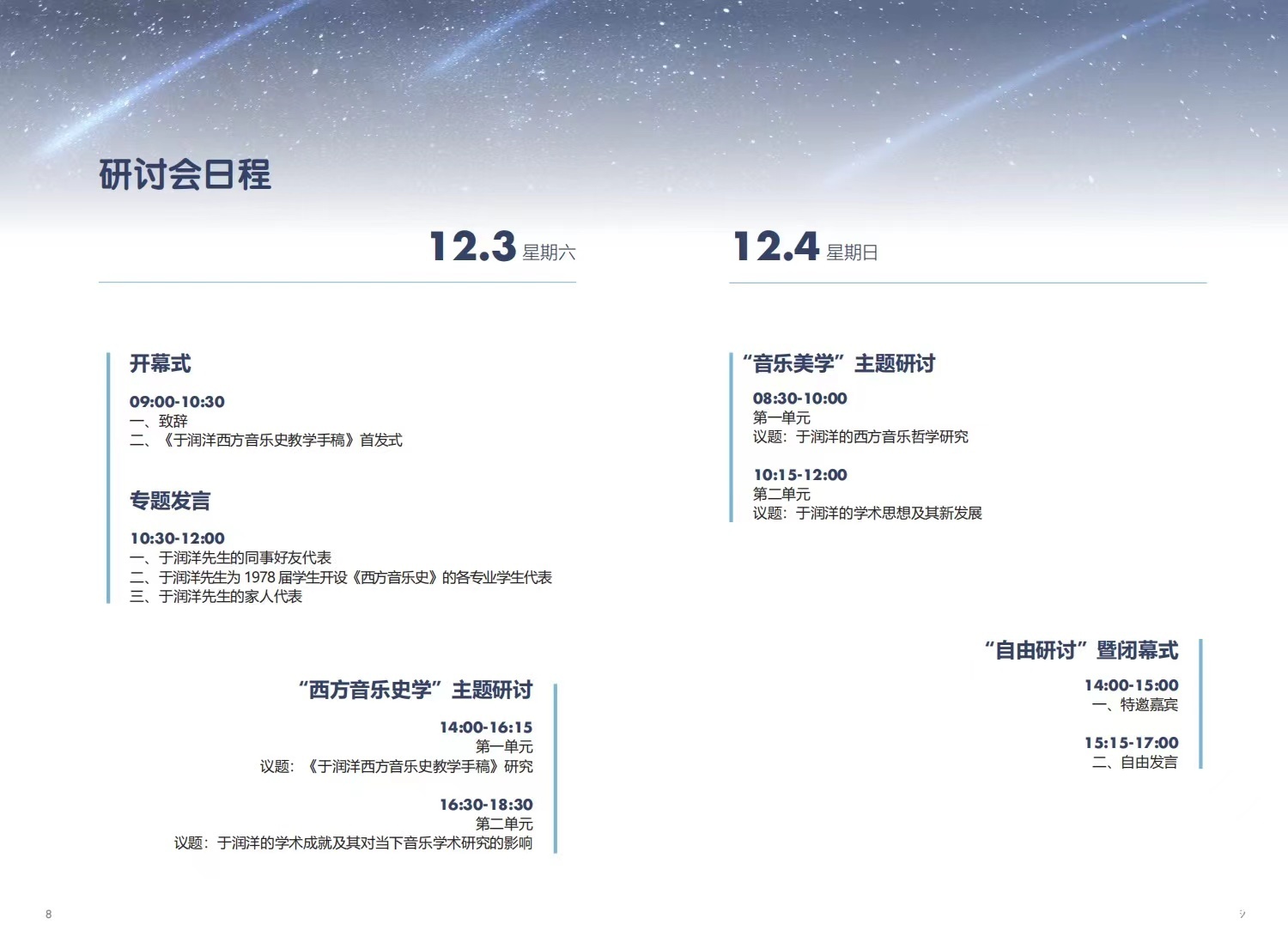 纪念于润洋先生诞辰90周年学术研讨会将于2022年12月3日9时在线上拉开帷幕。研讨会历时两天,来自全国逾五十位音乐学专家将齐聚云端,通过云直播形式向全国呈现一场高规格、高水平的学术盛会,共同纪念于润洋先生!