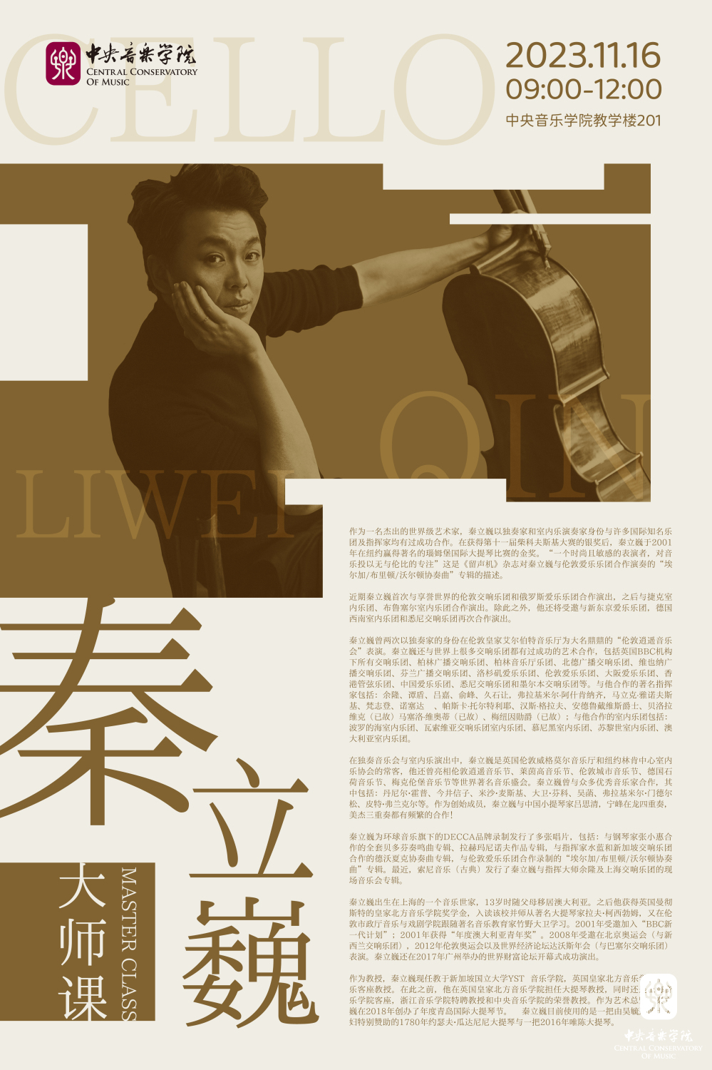 作为教授,秦立巍现任教于新加坡国立大学杨秀桃音乐学院,英国皇家北方音乐学院室内乐客座教授。在此之前,他在英国皇家北方音乐学院担任大提琴教授,同时还是上海音乐学院客座教授,浙江音乐学院特聘教授和best365中国官方网站的荣誉教授。作为艺术总监,秦立巍在2018年创办了年度青岛国际大提琴节。秦立巍目前使用的是一把由吴毓逊博士夫妇特别赞助的1780年约瑟夫·瓜达尼尼大提琴与一把2016年唯陈大提琴。