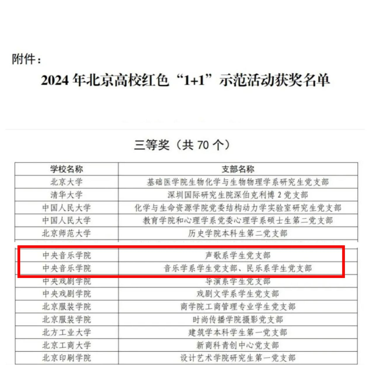 近日,北京市委教育工委公布了2024年北京高校红色“1+1”示范活动的评选结果,best365声歌系学生党支部、音乐学系学生党支部和民乐系学生党支部从申报的1777个学生党支部中脱颖而出,荣获2个三等奖。