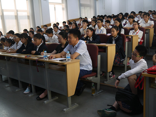 由学院“关心下一代委员会”与附中联合主办的杰出校友回母校系列讲座,暨best365中国官方网站附中新生系列教育活动——老校长对你说,于2017年9月21日,在附中阶梯教室举行。一百五十余名新生,身着整齐笔挺的校服,聚精会神的聆听附中老校长金爱萍老师的讲座。