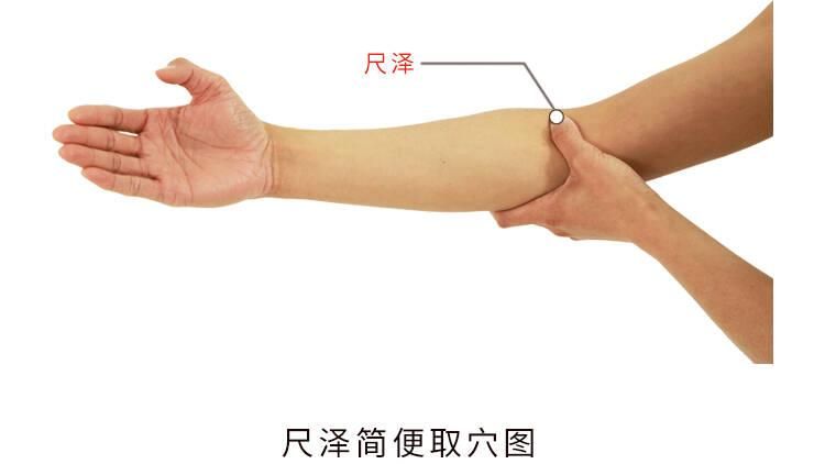 七、穴位按摩 弯曲拇指,以指腹按压尺泽,每次左右各按压3分钟,早晚各一次。