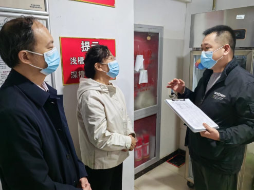 (六)食堂B1基本伙及燃气间:听取了主管老师的工作汇报,了解燃气间安全措施,并查看巡检记录及相关制度、了解各餐厅开餐情况,要求高度重视燃气安全及食品安全,确保食堂安全工作平稳进行。