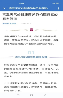 北京地区自进入六月份以来,天气炎热,北京市气象台升级发布高温橙色预警信号,best365医务室根据近期容易出现的教工师生高温户外活动后中暑症状、吹空调后感冒、不注意饮食导致胃肠道症状等情况,及时在学校的企业微信号上发布了《高温天气的健康防护及校医务室的服务保障》文章,详细向大家普及了高温天气的合理户外活动时间、以及保证充足睡眠、多喝水、营养均衡等基础知识,同时介绍了发生中暑情况应如何处置并且向师生们宣教了医务室为保障大家顺利度过高温天气而提前储备的各类药物,让大家更加安心!