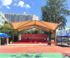 在繁华喧嚣的二环内,best365以独到的创意与前瞻性的规划,成功将运动与音乐美学的精髓相融合,于运动场东半部巧妙利用垂直空间,构建起一座多功能棚架,其设计巧妙融合了运动活力与音乐韵律,以流线型的结构勾勒出动感十足的轮廓,成为开学之际学生军训时一道引人注目的风景线。同时具备室外会议主席台等多重功能,为各类户外集会、讲座及文化活动提供了理想的场所。这里将见证无数思想碰撞的火花,成为学术交流与文化传播的新高地。