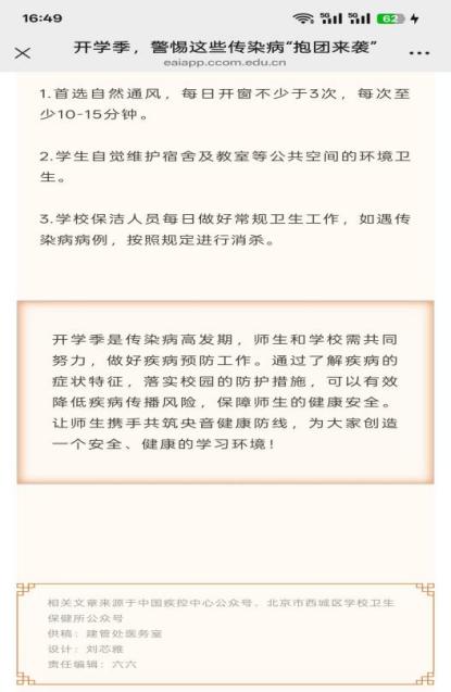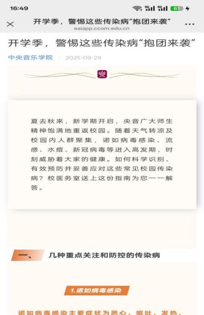 金秋时节,天气转凉,亦是各类传染病的高发期。校医务室特此发布秋季传染病防控提示,并同步推送官微文章《开学季,警惕这些传染病“抱团来袭”》,共筑健康防线。