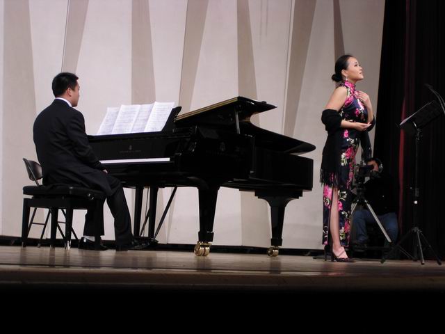 音乐会中作品所运用的无调性创作手法容易使作品在旋律组织上显得相对松散并影响音乐形象的生成,这次比赛的作曲家们却都十分注意通过钢琴与声乐的结合来进行音乐形象的刻画和意境的塑造,因此演唱者和钢琴伴奏对作品情感的准确表达和技巧的发挥也就显得十分重要。该场音乐会的演唱者和钢琴伴奏为我院声乐歌剧系以及钢琴系的本科生、研究生和年轻教师,当晚在演绎这些新创作的艺术歌曲时可以说他们均有较好的表现。其中吴艳彧在演绎48号作品《美丽的尼羊河》时宽长的拖腔和高音区明亮的花腔显现出了其精湛娴熟的演唱技巧。女高音柯绿娃明亮纯美的嗓音和轻松稳定的高音长音,以及男中音冯国栋对69号作品《伐檀》出色的音乐情感渲染也都让人留下了深刻的印象。