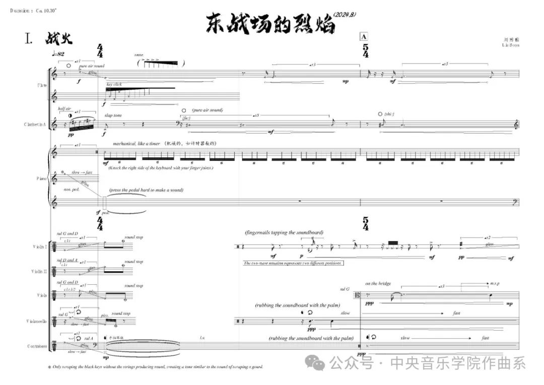 《东战场的烈焰》以中国近代国画家高剑父的同名画作为灵感,通过音乐语言诠释了“一·二八”淞沪抗战的历史记忆。作品采用叙事性结构,以时间顺序展开,分为四个乐章——《战火》《断壁残垣》《留白》《时空》,依次描绘战前、战时的紧张氛围与冰点气息,战后的破败景象与悲凉情感,直至展现荒芜后重生的生机与历史时空的延续。