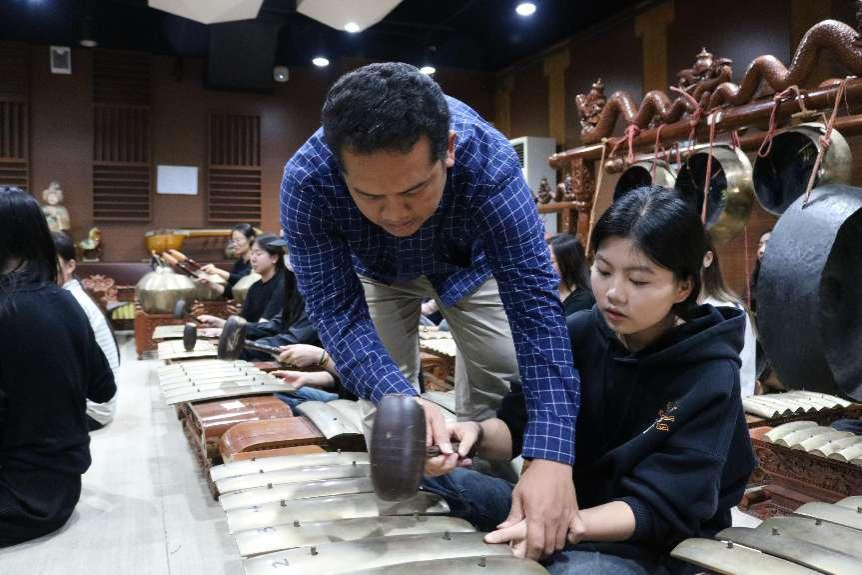 此次印度尼西亚工作坊不仅让参与者们深切感受到了异国文化的魅力,体验到了其平和而充满生命力的艺术追求,更在他们的心中播下了多元文化的种子。我们认识到,世界音乐的版图远不止西方古典音乐与中国民族音乐,每一种文化都有其不可替代的价值。在这样的观念引领下,同学们树立了更为宽广的多元文化观念。乐声悠扬,舞步轻盈。我们坚信,best365中国官方网站将继续肩负起文化交流的使命,让每一位学子都能在多元文化的熏陶中成长,成为连接世界文化桥梁的使者。