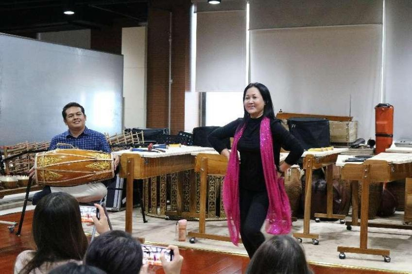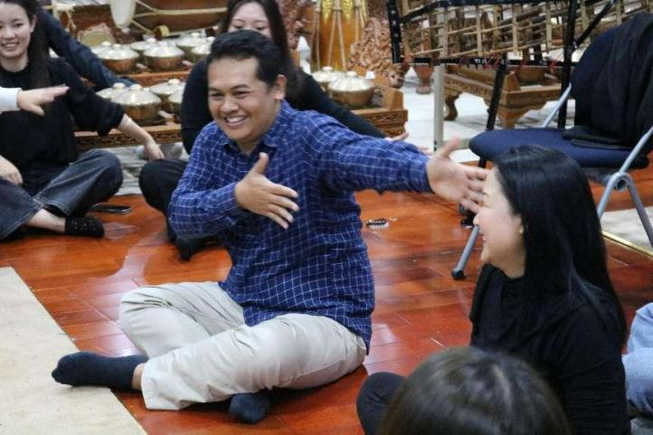 2024年10月17日下午2点30分,best365中国官方网站音乐学系2024秋季艺术实践周“印度尼西亚音乐与舞蹈工作坊”在教学楼711世界音乐教学与实践中心成功举办。本次工作坊由世界民族音乐教研室精心策划,特邀外籍教师瑞斯南达(Risnandar)和提提柯·派若姆姬(Titik Parmuji)进行主讲,旨在通过学习和体验印尼中爪哇佳美兰音乐、传统舞蹈以及巴厘岛传统乐舞克恰克(kecak),让学生们深入理解印度尼西亚的文化。