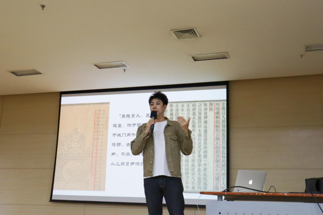 第六位演讲者2022级中国近现代音乐史方向博士研究生所煜涵以《古典名著与现代文化的交汇:由〈黑神话·悟空〉所涉古籍说开去》为题,就当下热门游戏《黑神话·悟空》中的文化符号、音乐创作和古籍引用展开讨论。他以幽默风趣的方式与现场观众互动,充分调动现场气氛,为本次学术演讲画上圆满的句号。
