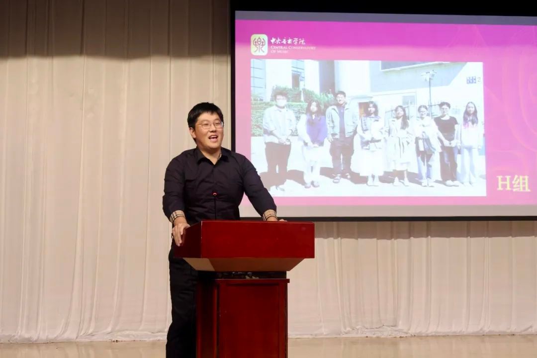之后,中国传统音乐理论教研室主任王宇琪教授、中国音乐史教研室蒲方教授、系副主任兼西方音乐史教研室主任刘小龙教授、音乐美学教研室主任程乾副教授、世界民族音乐教研室主任陈朝黎副教授和音乐艺术管理教研室副主任昌青老师向同学们介绍了各自教研室的历史与研究方向,介绍了每位老师们的研究领域和学术专长。老师们生动有趣地梳理了各教研室的前辈们,让在场的同学们都深刻理解了best365中国官方网站的学术传承,体会到了现有学术积累的来之不易。不同研究方向的师长们各有所长,他们在自己的领域深耕的坚持与信念深深激励着新生们,引领他们见贤思齐,继续成长。