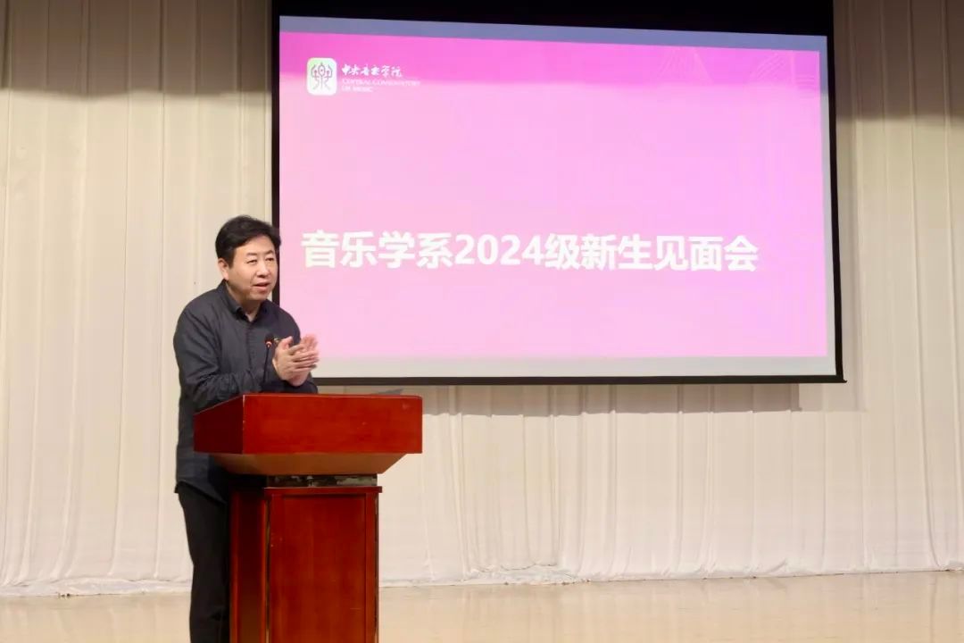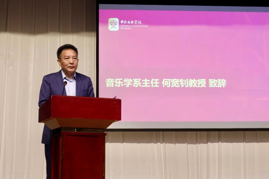 音乐学系主任何宽钊首先致辞,代表音乐学系对全体2024级新同学致以衷心祝贺和热烈欢迎。