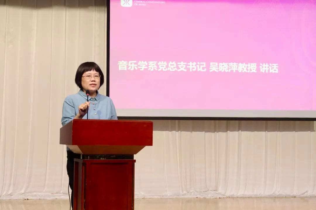 音乐学系党总支书记吴晓萍最后致辞。她提到音乐学系的辉煌历史和优良传统。众多的前辈老师以孜孜以求、扎实严谨的治学精神,培养了大量杰出的音乐学人才,创造了许多令人瞩目的教学与研究成果,为我国音乐学学科建设和发展作出了重要贡献。希望同学们能传承和弘扬音乐学系的优良传统,求真问学,练真本领,不断努力拼搏,推动音乐学学科向更高水平发展。吴晓萍教授还对每个阶段的同学们提出了切实有效的建议,以胡适先生的“功不唐捐”勉励新同学们脚踏实地努力学习。