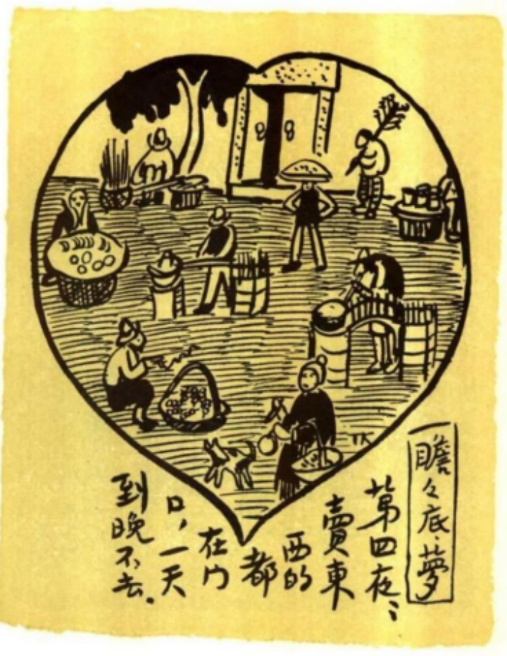 吴天戈的《如绘 II 漫画三则》创作灵感来源于丰子恺先生“瞻瞻底梦”系列中的三幅画作(如图3[4])。作品充分利用了各乐器间不同音色的融合与对比,而使得音乐极具画面感。作曲家力图通过对音乐中各种元素的调配与组合进而对三幅漫画作品进行不同维度的重新讲述。