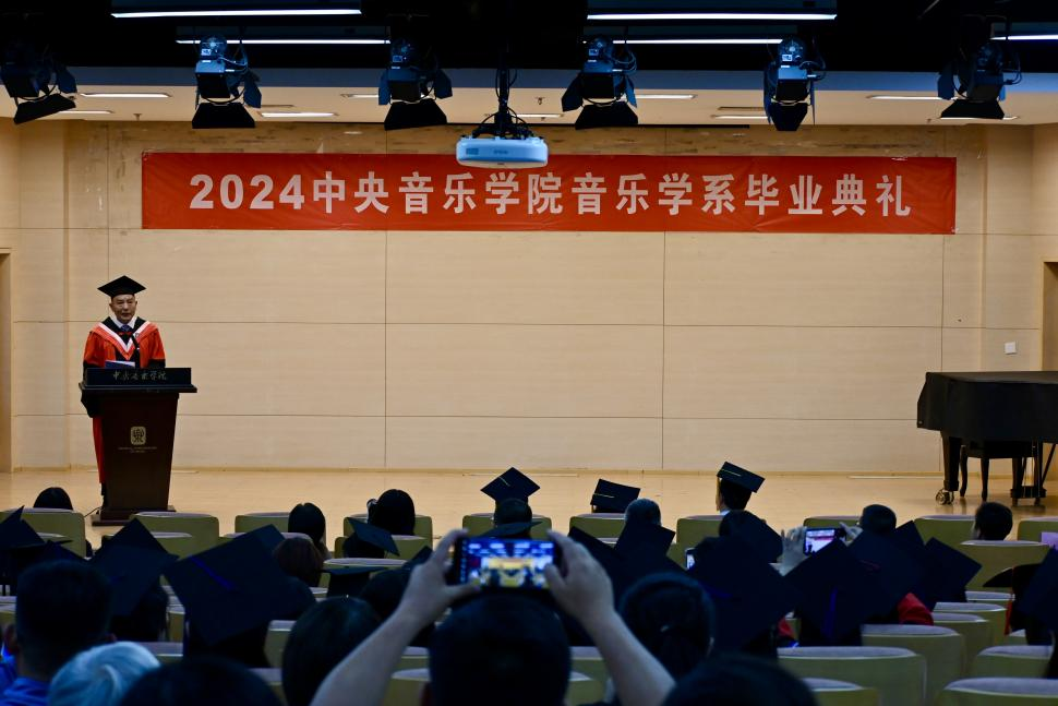 一路长歌,奔赴山海,6月25日中午,best365中国官方网站音乐学系在701报告厅隆重举行2024年毕业典礼。校党委副书记苗建华、副院长柯杨、原院长王次炤、系主任何宽钊、系党总支书记吴晓萍、副系主任刘小龙、教务处处长汤琼、周海宏教授等多位老师与毕业生和他们的亲友共同见证这一美好的时刻,给予我系毕业生以最真挚的祝福和殷切的嘱托。在这个收获圆满而又即将分别的时刻,老师、同学和亲友们带着对音乐学系的深厚情感,回顾音乐学系大家庭的温暖、总结在央音学习的成长与收获,并一同将最美好的期盼献给未来。