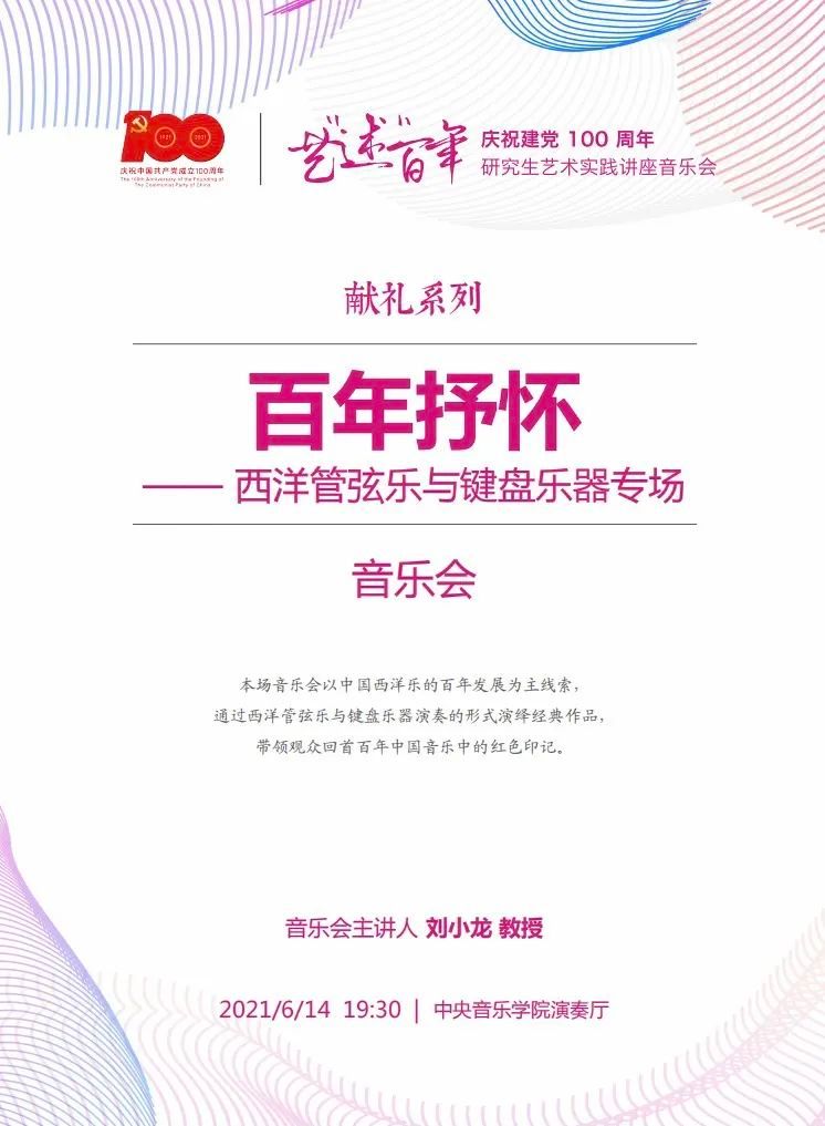 本场音乐会以中国西洋乐的百年发展为主线索,通过西洋管弦乐与键盘乐器演奏的形式演绎经典作品,带领观众回首百年中国音乐中的红色印记。