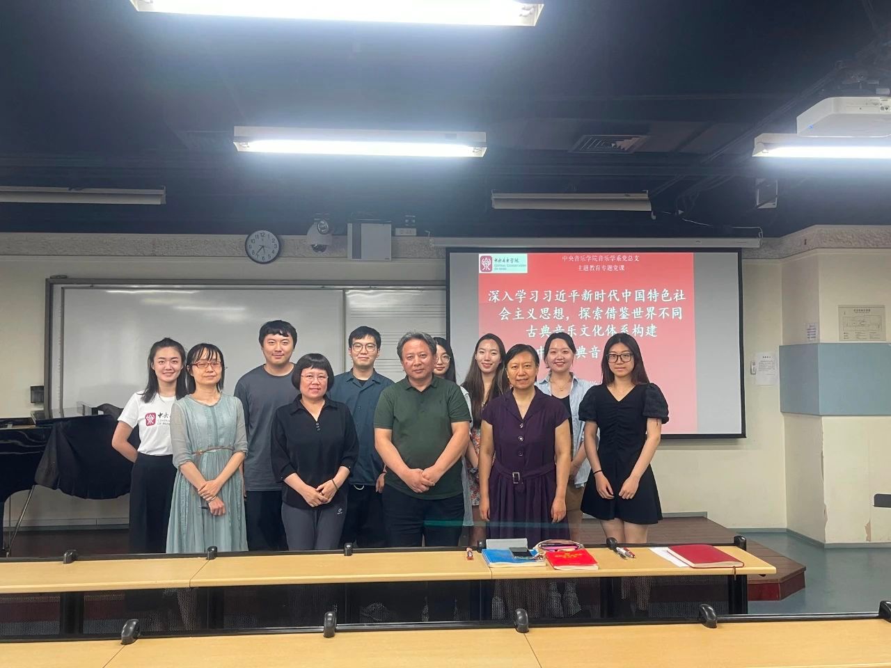 本期党课由音乐学系系主任安平教授与副系主任潘澜教授分别以“深入学习习近平新时代中国特色社会主义思想,探索借鉴世界不同古典音乐文化体系,建构中国古典音乐体系”为主题展开。