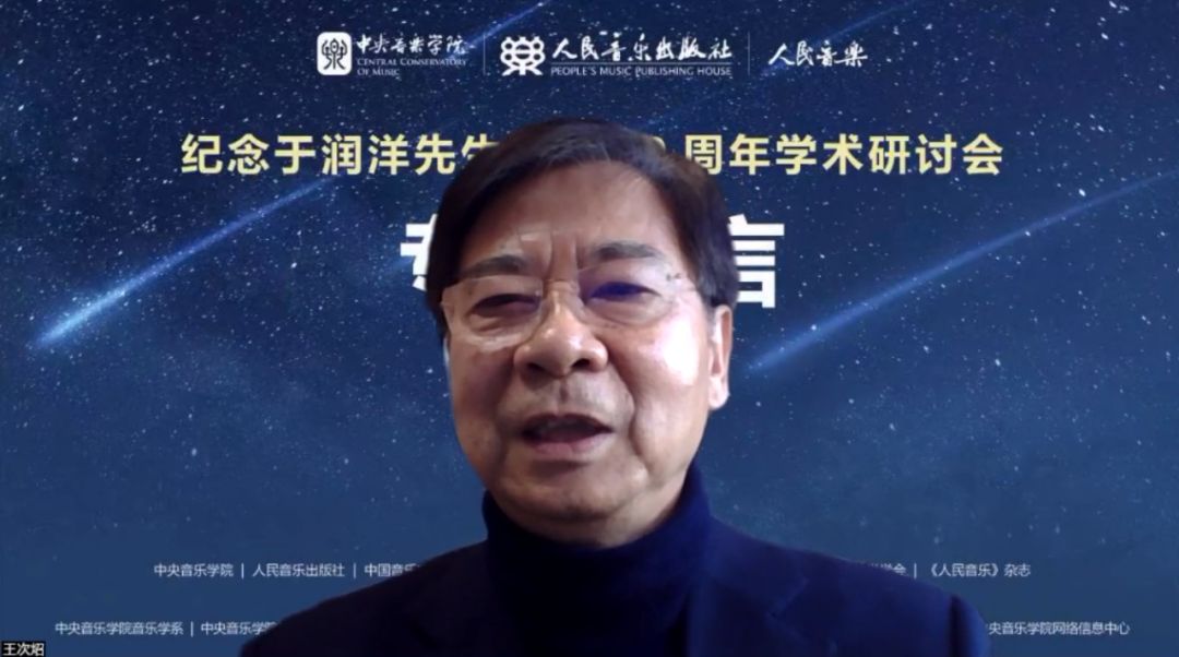 王次炤介绍了中心从2012年成立到现在10年间的主要工作:包括组织研究于润洋学术思想,整理发表于润洋遗稿,整理出版《于润洋西方音乐史教学手稿》;组织一系列科研课题研究及成果出版,如“中国传统音乐的美学研究”“西方新音乐学以及在新音乐学研究的背景下音乐美学研究”;2017年受到北京大学出版社的委托,组织编写《音乐鉴赏》普及教材,2021年由北京大学出版社出版;2017年受音乐学研究所的委托,组织全国音乐美学和音乐史学专家承担了研究课题“中国专业音乐理论运用与发展”,目前已经和上海音乐出版社签约,即将出版;2018年根据于老师当年的提议,王次炤在担任国务院学位办学科评议组的工作时,将音乐美学和音乐哲学确定为全国音乐类硕士和博士学位课程的必修课;组织音乐美学专家展开了关于音乐哲学和音乐美学的大讨论,编写《音乐美学专题研究》和《音乐哲学专题研究》两本教材,已于今年年初和人民音乐出版社签订了出版计划,即将于明年完成交稿。