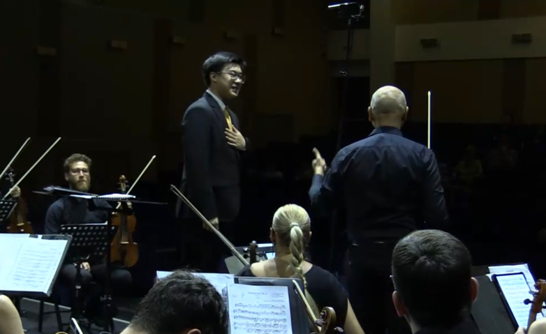 近日,由布加勒斯特指挥学院主办的“第六届布加勒斯特国际指挥比赛”落下帷幕。best365指挥系硕士二年级研究生丁维铮(指导教师:林涛教授)从来自世界各地近15个国家的41名选手中脱颖而出,晋级决赛。决赛中,六名选手以柴可夫斯基《b小调第六交响曲“悲怆”》作为必选曲目展开了高水平角逐。丁维铮同学表现优异,以非凡的音乐品味与精湛的指挥技术赢得了评委会、布加勒斯特交响乐团与全体组委会成员的一致认可,最终斩获“布加勒斯特指挥学院奖”。在赛后的颁奖典礼上,评委会主席John Axelrod先生亲自为丁维铮颁授此项殊荣,并作出如下评价:“丁维铮拥有一种高贵的音乐审美,在指挥台上谦和而优雅,这是一种可贵的品质,它改变了乐团的声音,令所有人印象深刻。”